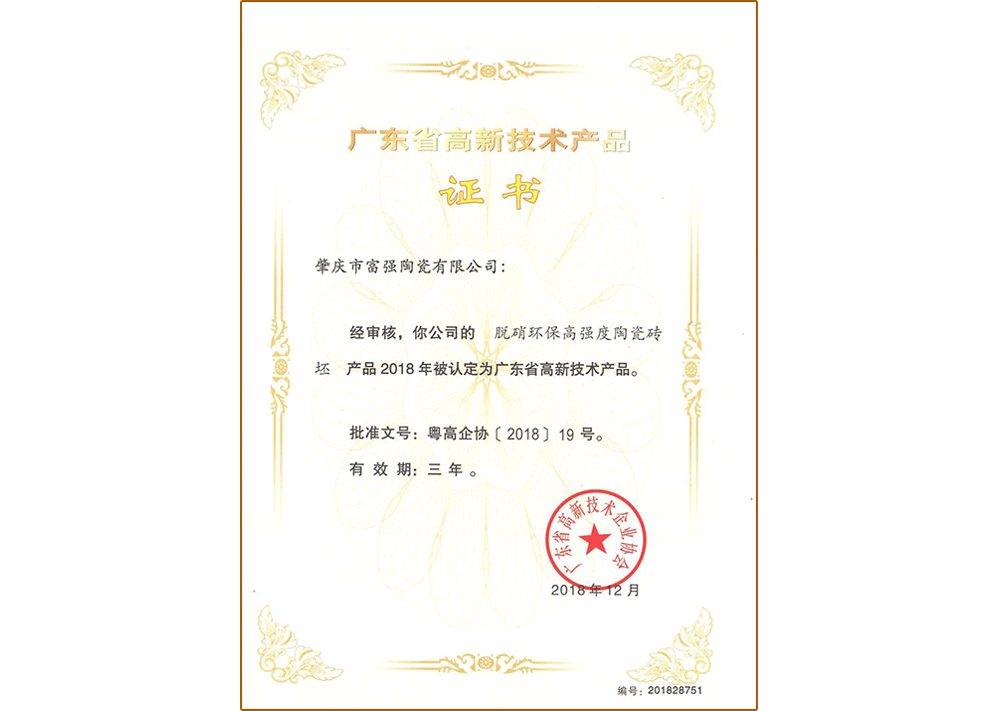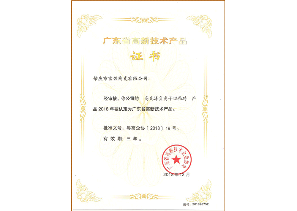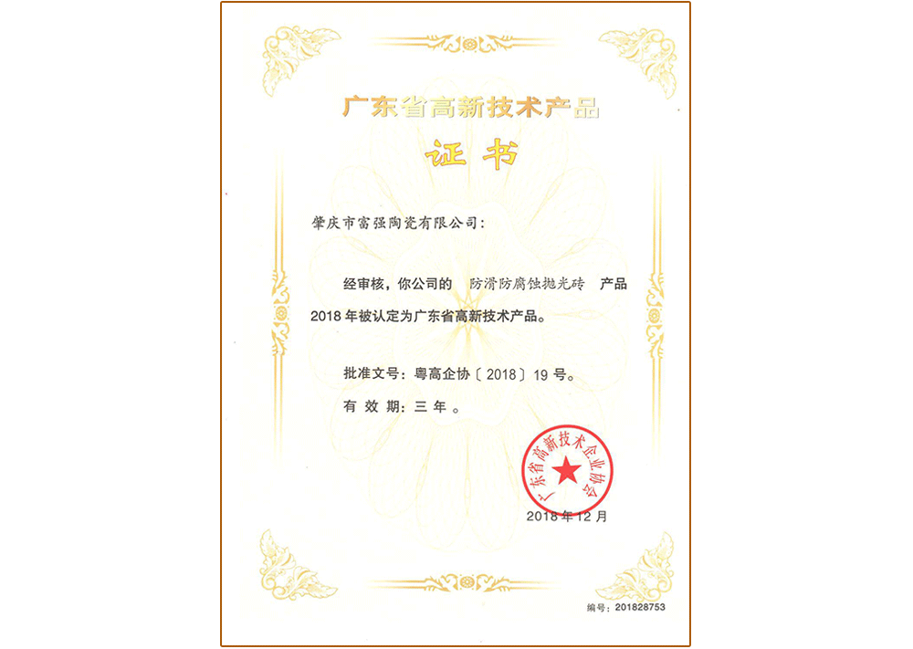 高新技術(shù)產(chǎn)品證書—拋釉磚
