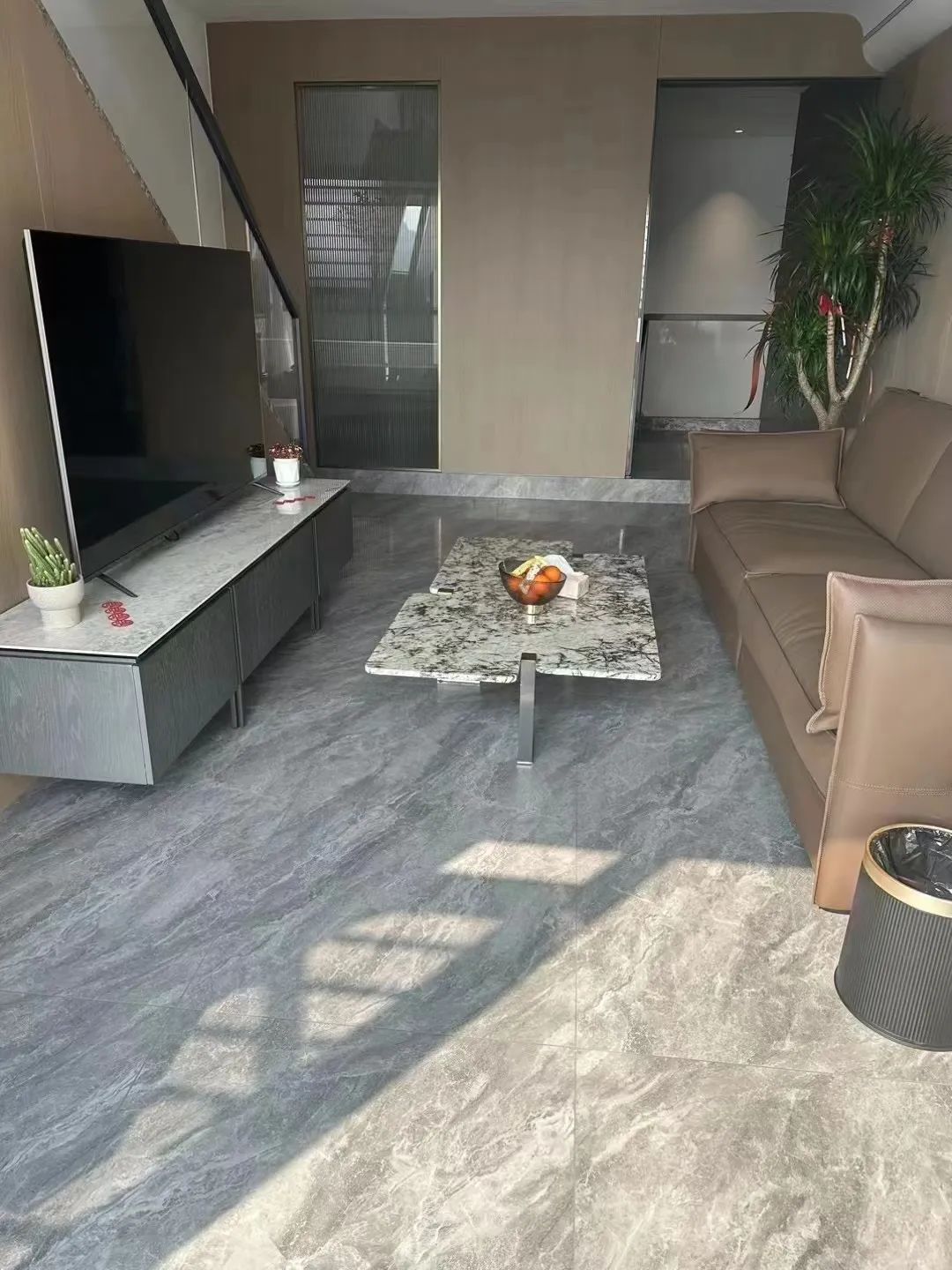 尊卓陶瓷柔光磚獨特之處能把感光度調到人體視覺上的舒適,不會帶來壓抑感達到無光污染的效果。